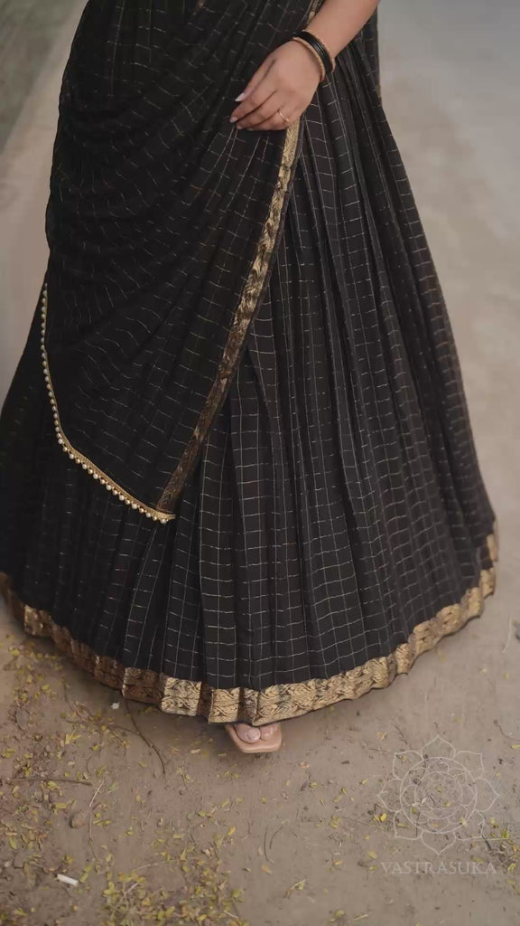 Black checks half saree